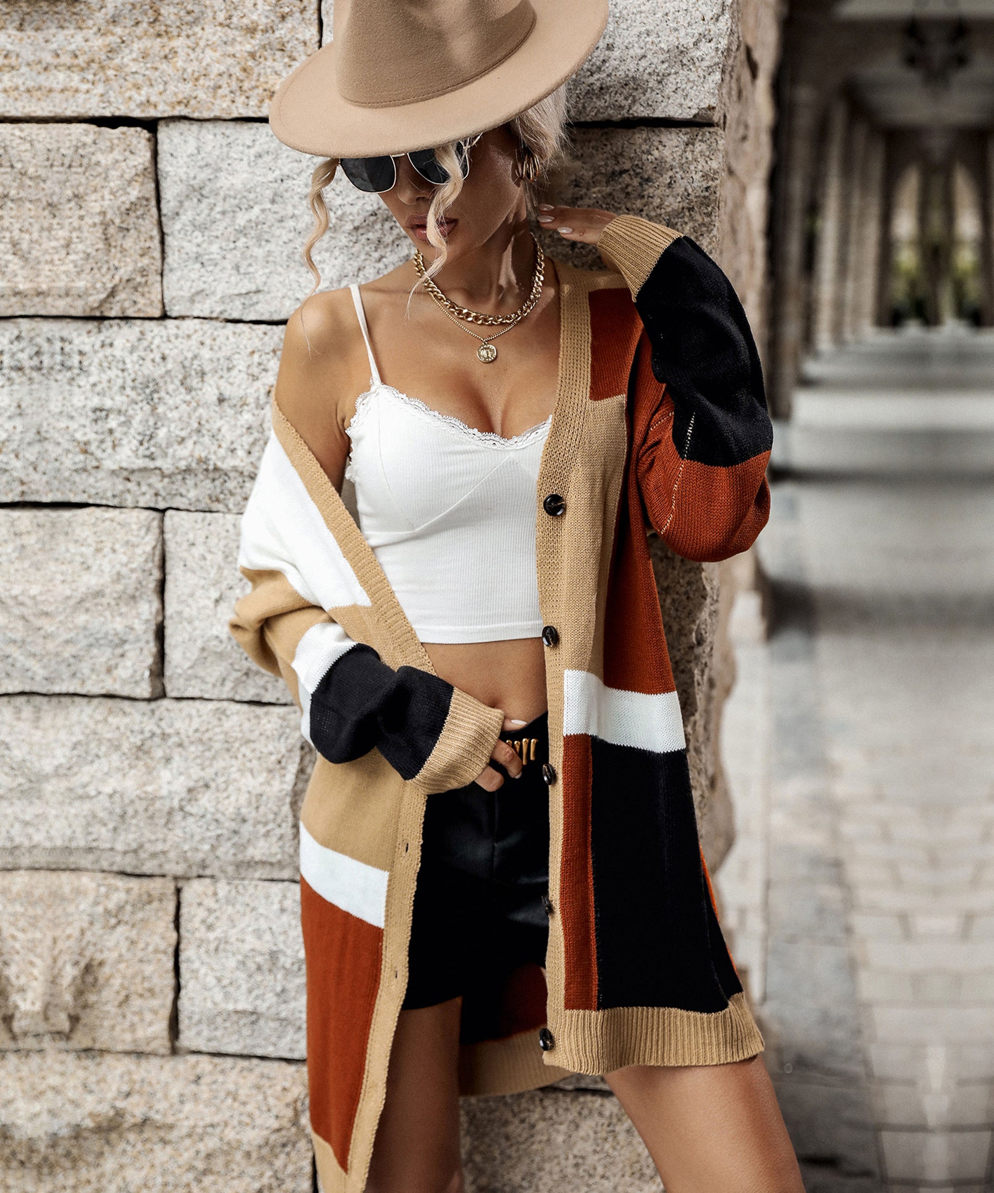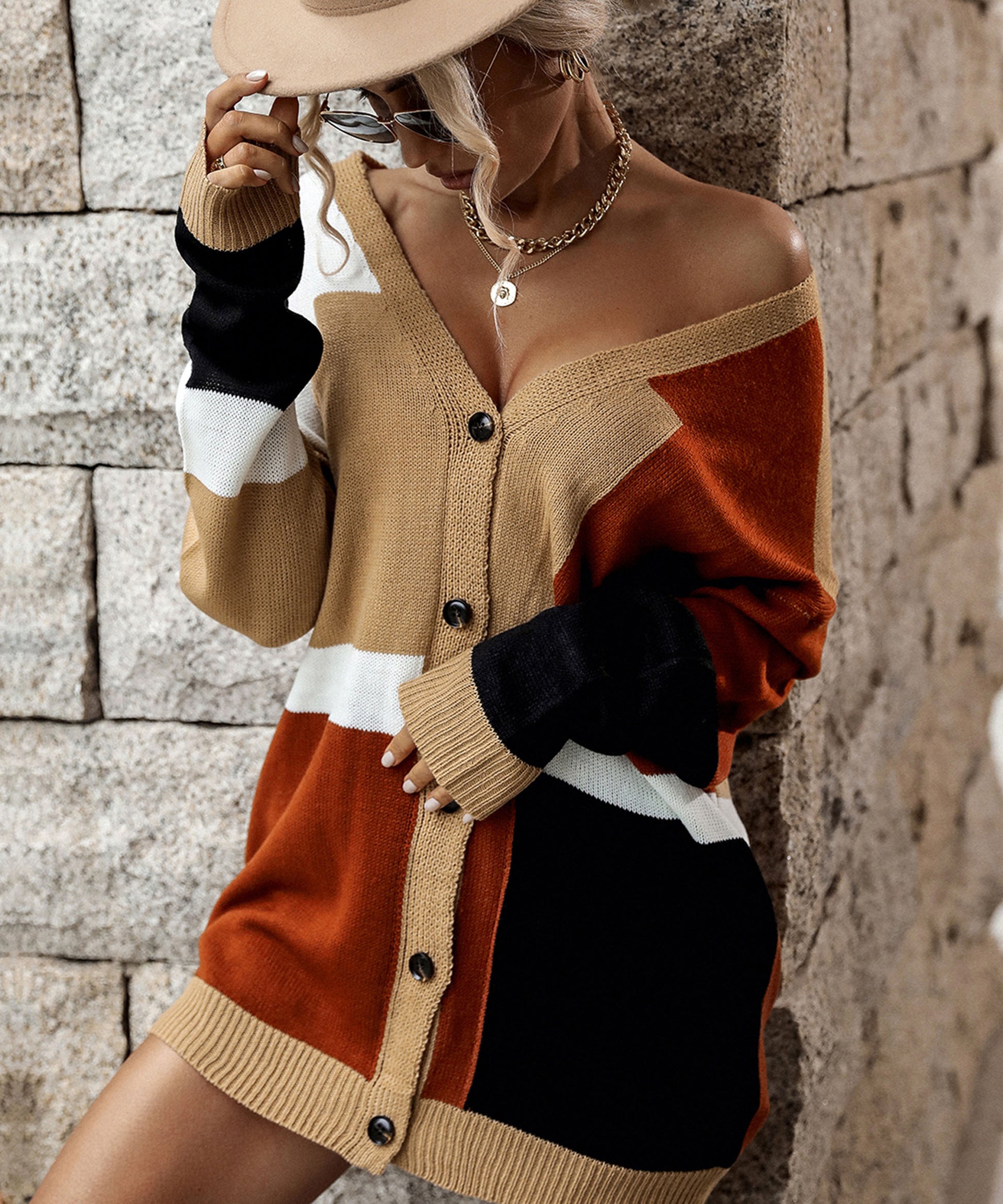 Autumn Women Wear Colorblock Sweater Coat Women