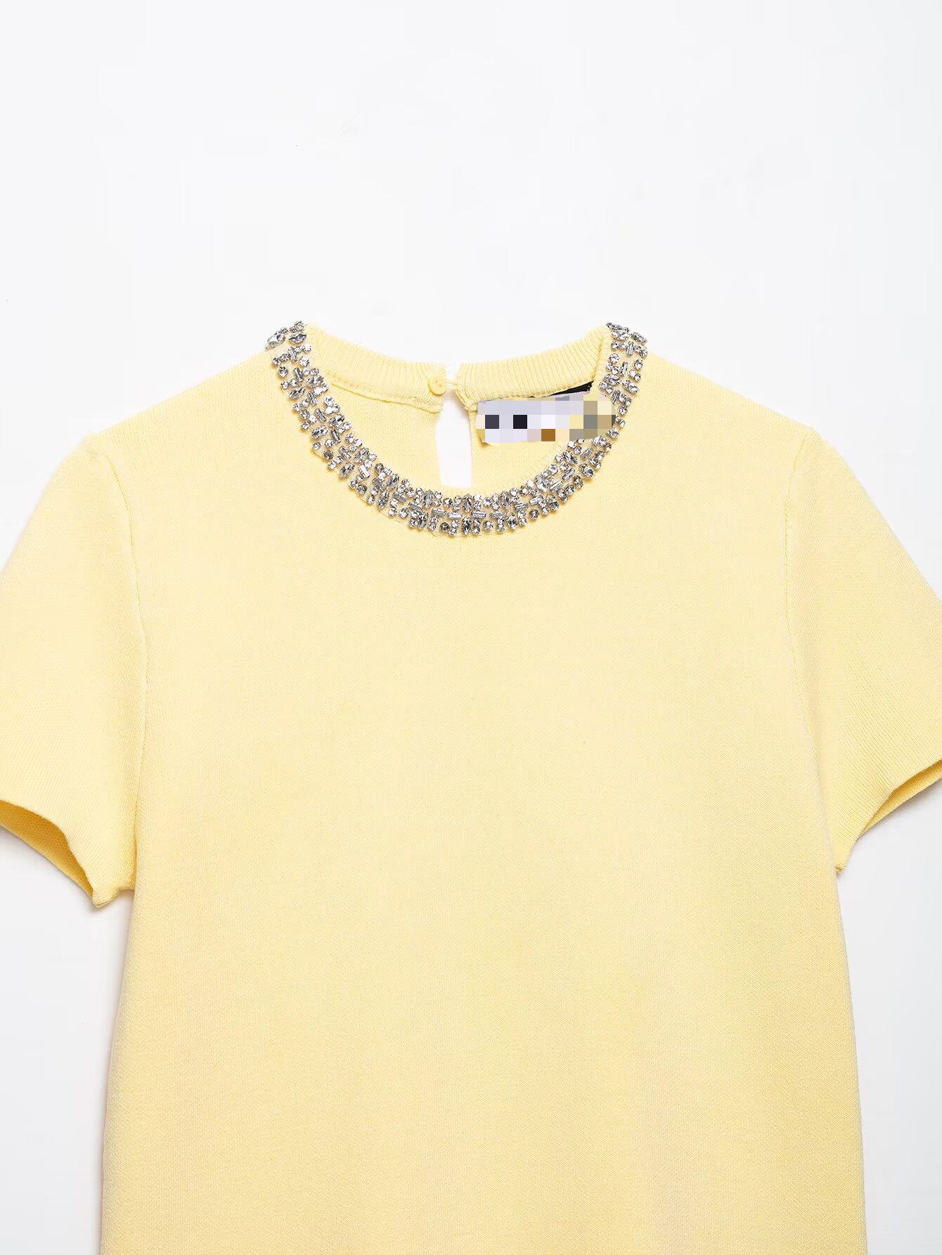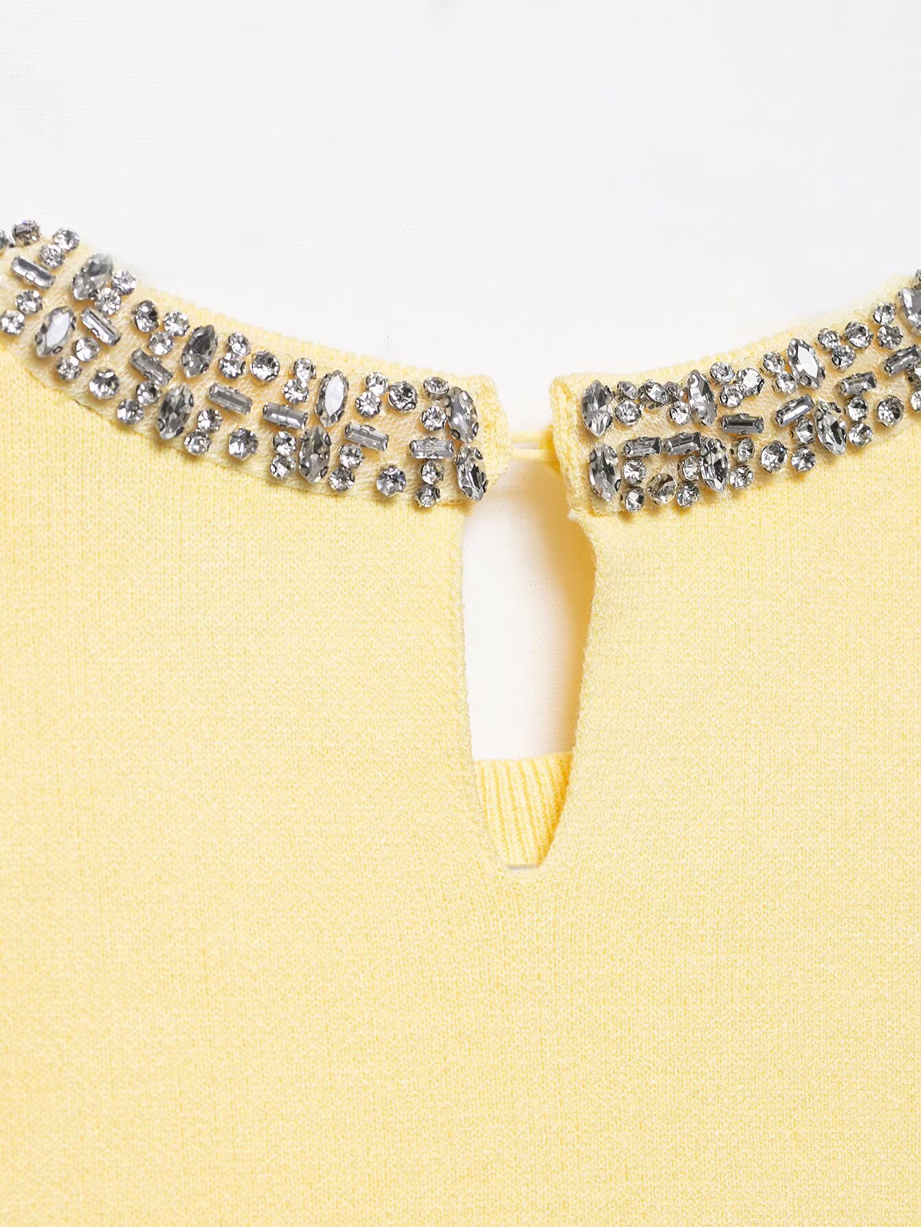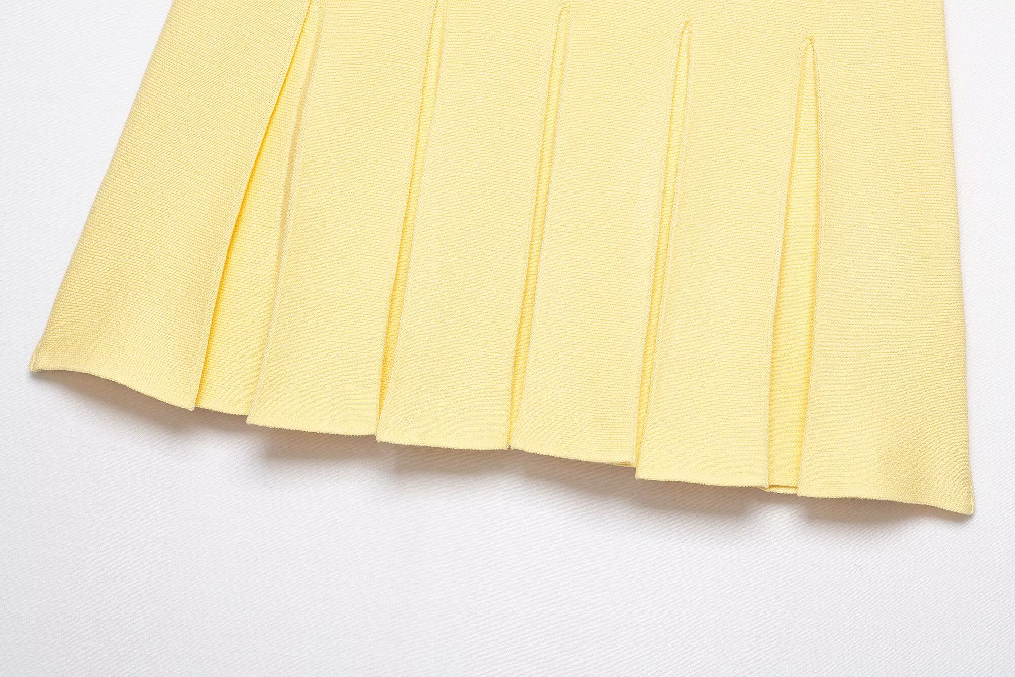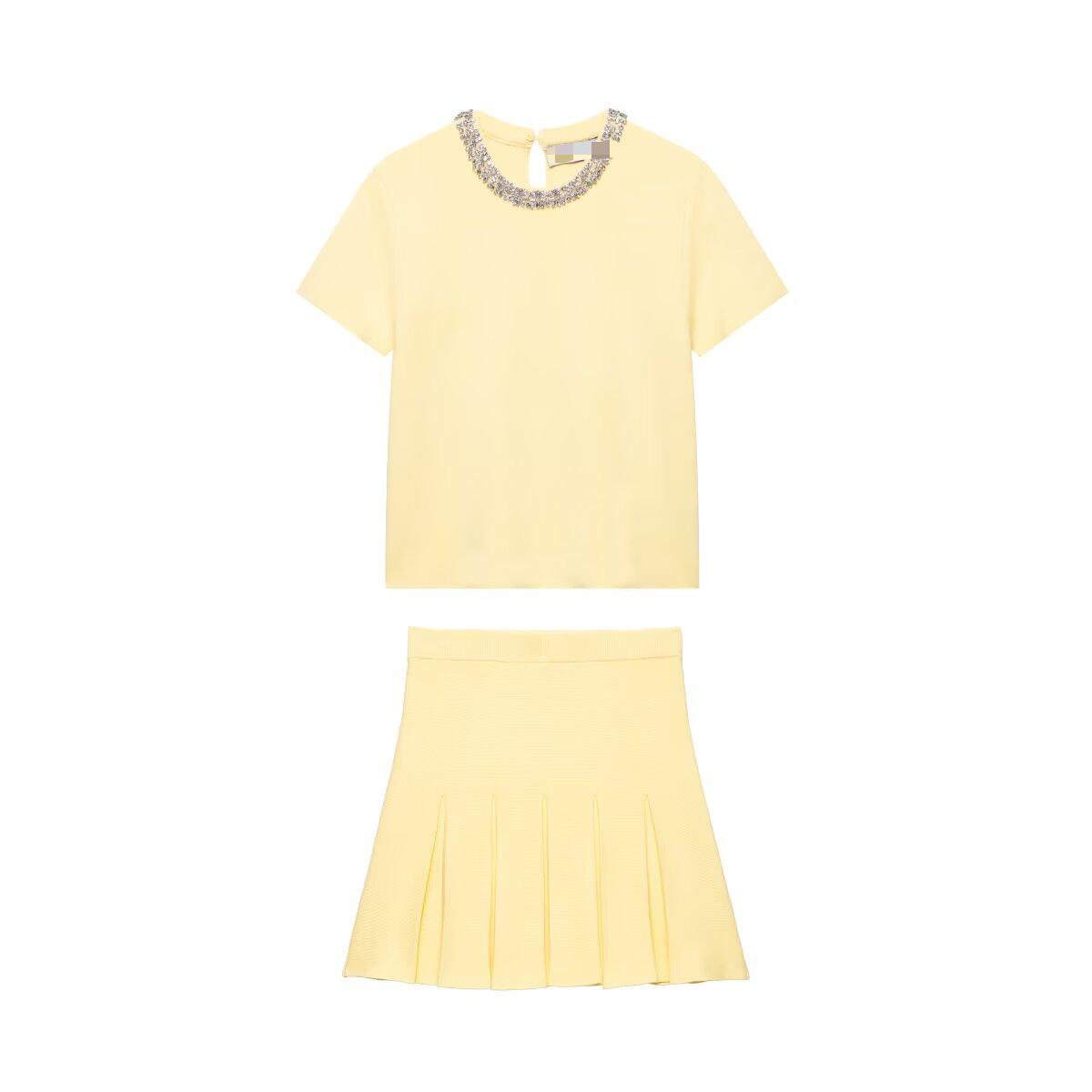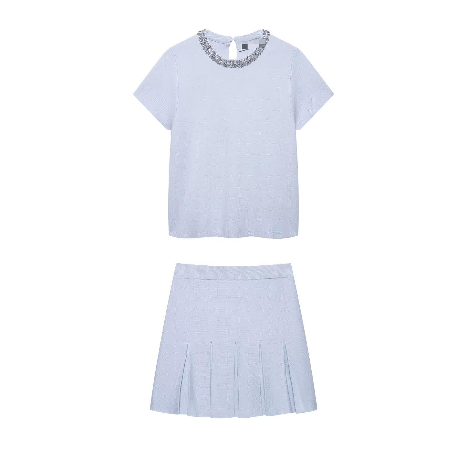 Jewelry Knitted Top Wide Pleated Knitted Mini Skirt Two Piece Sets