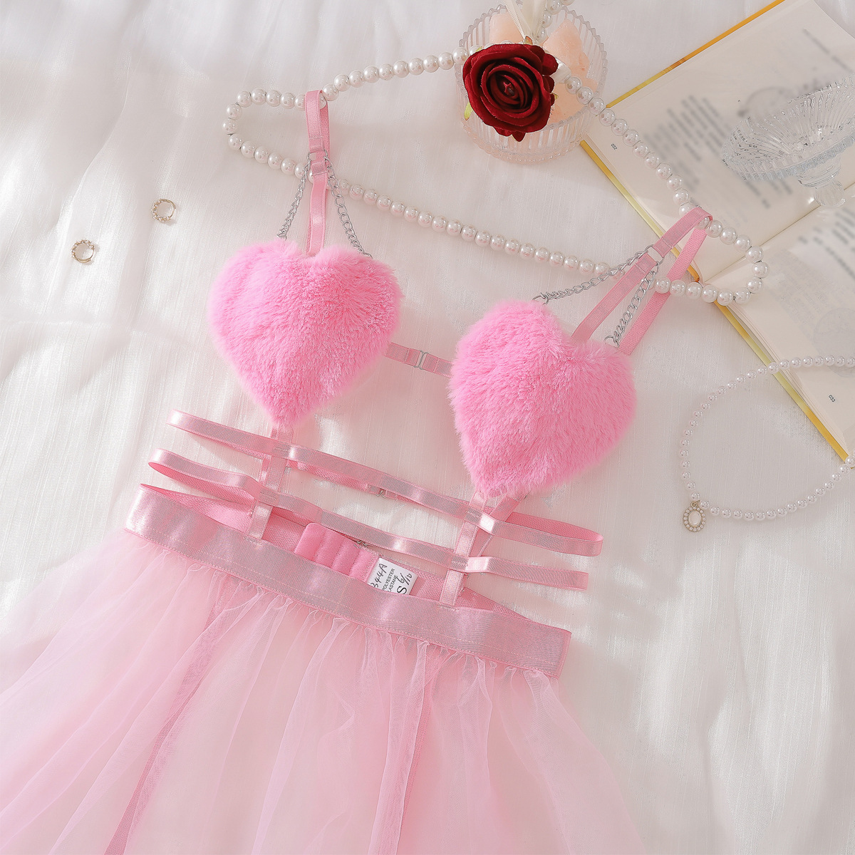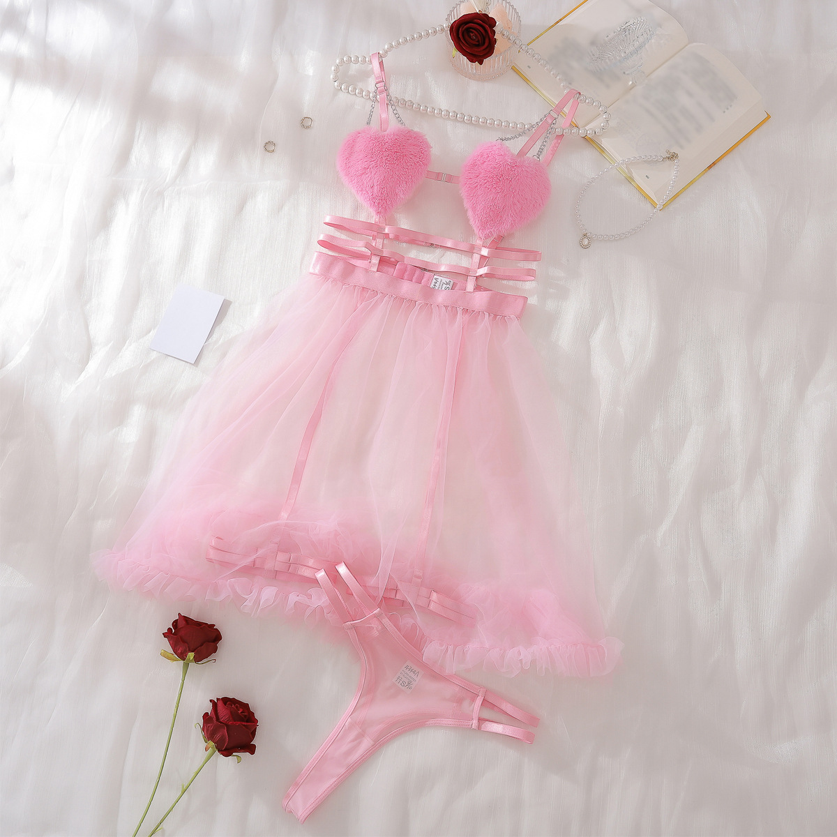 Sexy Pink Sheer Mesh Slip Nightdress Stitching Sexy Love Sexy Lingerie